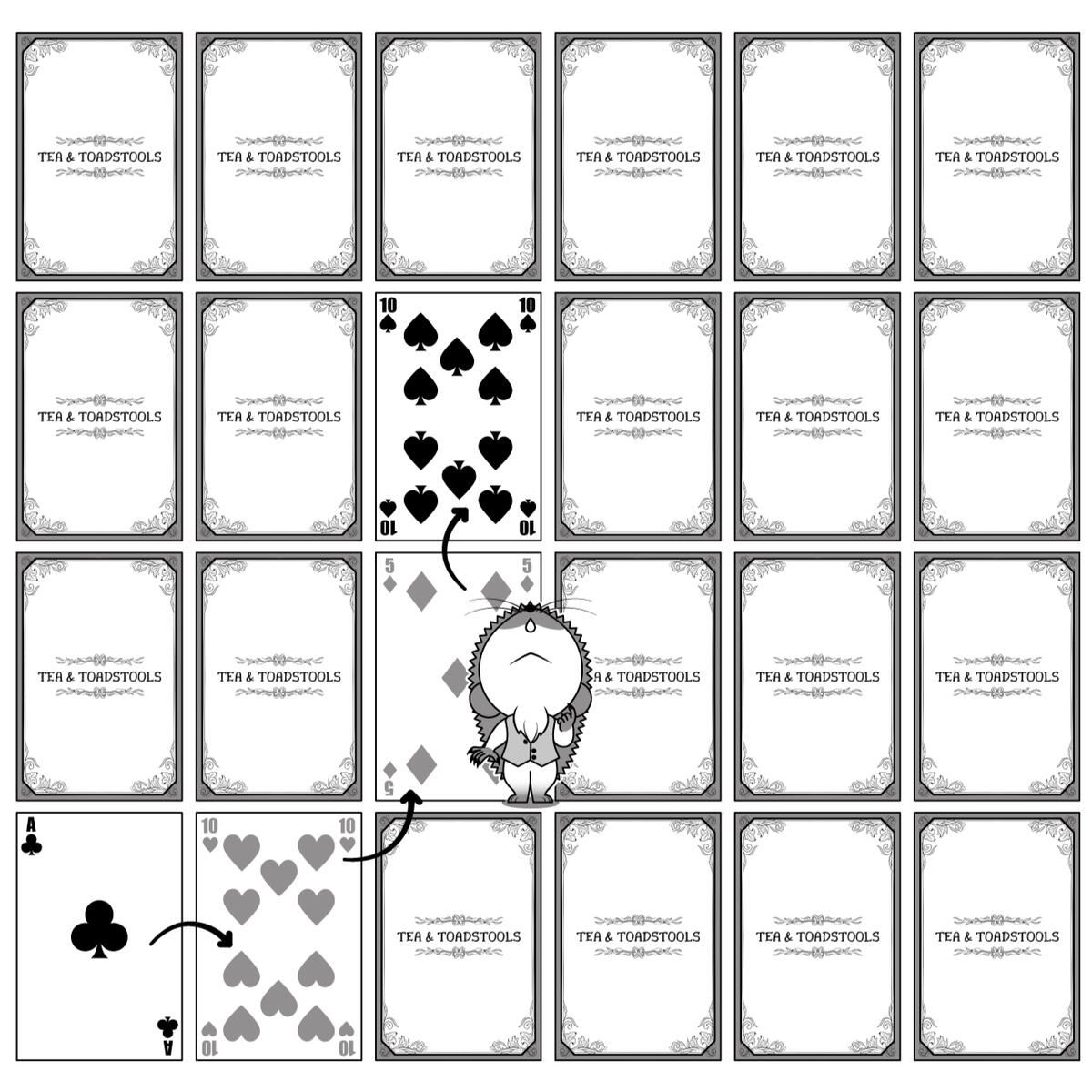 Anya commissioned me to help out with some of the work for the Tea & Toadstools book. I created this layout and illustrated the hedgehog to demonstrate how the game is played.I provided the artwork for both digital and print, to suit both formats of the book.